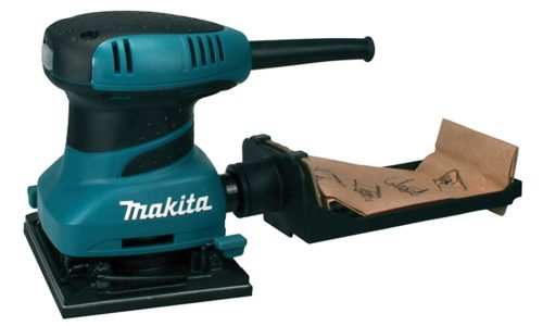$69.46Quick ViewThe Makita BO4555 Palm Sander with Hook & Loop and Clamp has the following specifications ;Abrasive Sheet : 114 x 102 mm.Orbit Diameter : 1.5 mm.Orbits per Minute : 14,000 opm.Pad Size : 112 x 102 mm.Vibration sanding : 2.5 m/sec².Vibration K factor : 1.5 m/sec².Input wattage : 200 watt.Noise sound pressure : 80 dB(A).Noise K factor : 3 dB(A).Net weight : 1.1 kg.Supplied with ;6 x Abrasive papers.Dust bag.Punch plate.