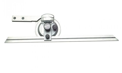 $1,525.54Quick ViewBevel protractor with high-precision angle gauge for accurate angle measurement of machines, moulds and jigs. Used for machine drawing jobs or checking angles and lay out. Satin chrome dial with clear graduations. For use as a reference for assembling and machining. A height gauge attachment is provided for use with Mitutoyo height gauges. Minimum reading: 5in.Rule: 300mm (12in), magnifier and holder.Graduation: 0.05 degrees