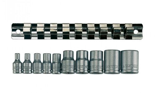$26.11Quick ViewAn 10 piece 3/8in and 1/4in square drive TX-E socket set on a clip rail. Useful for people who regularly use a limited number of sizes.The clip rail can also be screwed to a wall, providing an ideal storage solution. Contents : 5 x 1/4in drive TX-E sockets: E4, E5, E6, E7 AND E8. 5 x 3/8in drive TX-E sockets: E10, E12, E14, E16, E18. 1 x Clip rail complete with 5 1/4in drive and 5 3/8in drive socket clips.