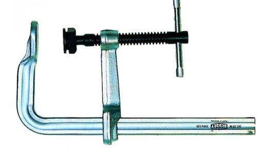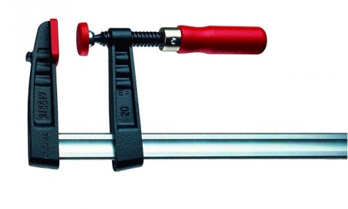$18.73Quick ViewOften copied, never equalled: the original malleable cast iron screw clamps from BESSEY the classic screw clamps dating back to 1936. Unmistakable, thanks to their unique high-quality profiled rail and their characteristic malleable cast iron arms, serrated for reinforcement. The integrated BESSEY anti-slip system additionally ensures maximum safety. This is why the original BESSEY malleable cast iron screw clamps have proved so successful for so many years. And so ideal for all applications where powerful, rigid clamping is required. Try them out for yourself! Your benefits at a glance:1 Integrated BESSEY anti-slip system.Maximum safety is available with the integrated BESSEY anti-slip system, when clamping with a throat depth of 80 mm or more. A set screw that is molded into the sliding arm interlocks with the serration on the rail. This effectively prevents the clamp from dislodging or slipping away. 2 Reinforced malleable cast iron arms.The characteristic high-quality malleable cast iron fixed and sliding arms, which are serrated for reinforcement, allow powerful, rigid clamping. The powder coating provides additional protection against corrosion. 3 High-quality profiled rail.The BESSEY profiled rail from our own drawing plant has been especially optimised for clamps. The profile acts as a reliable reinforcement against torsional forces, while the serration on six faces additionally prevents the clamp from slipping. 4 Smooth-running spindle.The surface-coated spindle with acme thread is particularly smooth-running, and does not bind. For even smoother, more efficient work. Noticeably more comfortable.The Bessey TG12 Malleable Cast Iron Screwclamp has the following specification: Clamping Force: up to 6,000N.Opening 120mm.Throat Depth: 60mm.Rail: 20 x 5mm.Weight: 0.42kg.