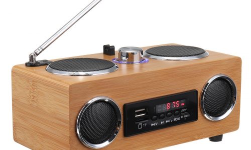 Retro Vintage Portable Radio Receiver Speaker Multimedia Player Super Bass FM TF Card USB Natural Bamboo