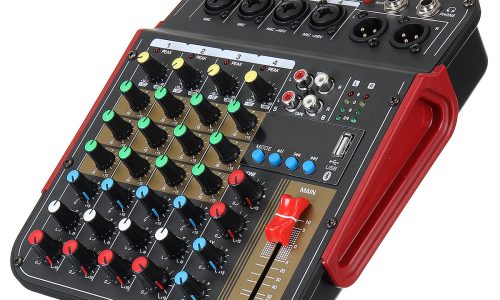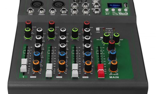 $70.74Quick ViewSpecificaation:Name: 4 Channel bluetooth DJ Mic Audio mixer Control LED Digital Display Music StreamModel: EU Plug/US PlugMaterial: Acrylonitrile Butadiene Styrene (ABS)Color: GreenChannel MIC / LINE: 4 CHPower: 48VTotal Harmonic Distortion: 0.01%Frequency Response: 20Hz -20KHzS / N Ratio: 80dBMicrophone input level: + 24dBLine input level: + 24dBMaximum output level: + 26dBFeatures:● Multifunctional HD LED Display● Intelligent Control bluetooth Play, effective transmission distance is 3-5 meters● Low noise, high precision microphone preamplifier, good sound quality● Built-in digital reverb effect● 3 band channel equalization● 48V phantom power● Equipped with headphone monitoring interface● Strong compatibility● U disk playback, fast and easy● Real-time monitoringApplication: Performance Stage, Wedding, Speech, Broadcast, Family, DJPackage include:● 1 x Audio Mixer● 1 x Charger (EU Plug/US Plug)