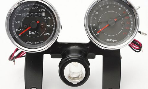 $24.01Quick ViewUniversal LED Motorcycle Tachometer+Odometer Speedometer Gauge With BracketSpecification:Voltage: 12VFits for motorcycleColor: as picture showsMaterial: Stainless steel shellTachometer measurement: 0-13000RPMOdometer measurement: 0-180km/h2 in 1 speedometer gauge: Tachometer and OdometerQuantity: 1 pc Tachometer, 1 pc Odometer, 1 pc BracketInternal night blue ,white and red LED lightSize:Overall Size: 16x11x7cm / 6.3×4.33×2.75 (LxWxH)Each Gauge Package size: 9 x 9 x 8.8cm / 3.54×3.54×3.46 (LxWxH)Mounting distance: 10cm / 3.93Mounting hole diameter: 10mm / 0.39Tachometer:Longer red wire connect to power positive , longer black wire cnnect to power negative.Shorter black wire connect to power positive, green to power negative, yellow wire connect to turn singal Odometer:Red wire connect to power positive , black wire cnnect to power negativePackage Included:1 X Tachometer1 X Odometer1 X Bracket