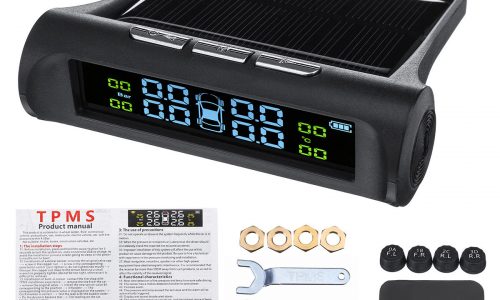 $24.14Quick ViewThis Tire Pressure Monitor displays real-time pressure and temperature, it can be placed anywhere stably and you can easily read the data. Easy to install, convenient to replace, suitable for all cars on the market.FeaturesFit on almost 100% cars on market.Colorful LCD digital displaying, clear to show tire information.Rear-time monitoring pressure and temperature of 4 tires.Solar powercharging, dont need to charge by connecting car charger.Wireless connect by sensors, build-in sensors and external sensors options, easy to install, meets all your need.Specifications:Temperature resolution2C25CPressure resolution0.1BarTransmitted power10dBmLithium batteryCR1632ModelOperating voltage2.1-3.6VWorking temperature-30C-85CPressure range:0-5.0BarWaterproofgradeIP67Emission frequency433.92MHzBattery life24 monthsStorage temperature-30C-90CPacking list1* Tire pressure monitor1*double-sided tape4* Sensor4* Anti-theft nut1* Wrench1* USB cable1* Instruction manual