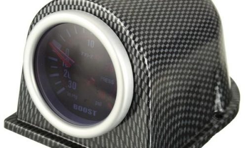 52mm Turbo Boost Gauge Meter Carbon Fiber Pod Smoke Face Universal PSI
