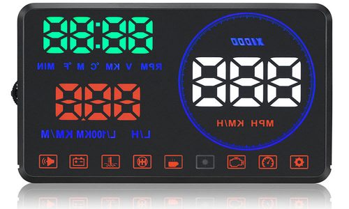 $34.67Quick ViewDescription:HUD short for Head Up Display.It displays driving datas on the front windshield such as speed,rpm, fuel consumption,water temperature,voltage;avoiding drivers become dangerous because of watching the instrument while driving.Drivers can read the driving information instantly,and can always keep the best state on the way with HUD.Feature:1.Available for cars with OBD2 and EUOBD port(Car automatic diagnosis system) ,plug and play.2.Screen 5.5 inch HD display.3.Multi-color design makes the screen more abundant and easier to read.4.Nano-technology to eliminate double reflections,more clear.5.New function: Driving distance measurement.6.Rich Contents: speed,rpm,water temperature,voltage,instantaneous fuel consumption,average fuel consumption,driving distance measurement, voltage,shift reminders,fatigue driving reminders,low voltage alarm,high water temperature alarm,over speed alarm, engine failure alarm, eliminate the fault code,freelyswitch between kilometersmiles.7.Auto power on/off: HUD start and off with vehicle started and shutdown, effective protection of the car battery;retaining the manual switch mode,more easy to control HUD.8.Automatic and manual brightness adjustment mode,driving without glare.Package Included:1 X HUD Body1 X Non-Slip Mat1 X HD Reflection Film1 X OBD Cable1 X Reflection Panel1 X User ManualSpecification:Environment Temperature-40c- + 80cAtmospheric Pressure86-106KPaRelative Humidity10% -95%Environmental NoiseLess than 60dB (A)Alarm Sound Le