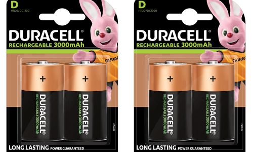 Duracell Rechargeable D Cell HR20 MN1300 NiMH Batteries 3000mAh – Extra Value 4 Pack