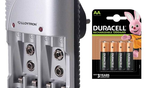 Lloytron Mains Battery Charger + 4 x Duracell AA 1300 mAh Rechargeable Batteries
