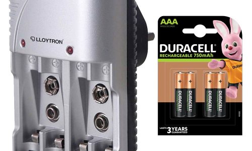 Lloytron Mains Battery Charger with 4 x Duracell AAA 750 mAh Rechargeable Batteries