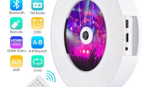 Qosea Portable Wall Mountable Bluetooth CD/DVD Player USB LED Display HiFi Speaker Audio with Remote Control FM Radio Built-in