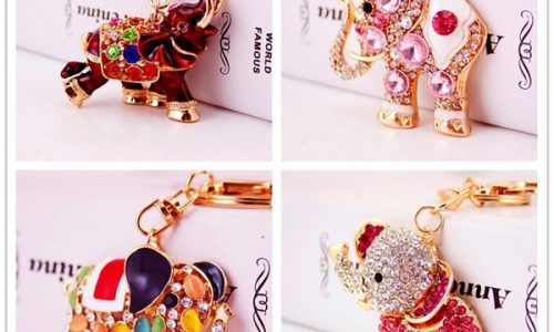 Souvenir Creative Lovely Diamond Inlaid Crystal Elephant Key Chain Animal Bag Accessories Metal Pendant Small Gift