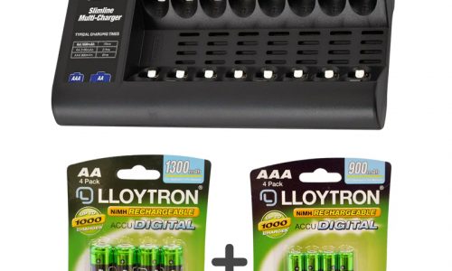 Lloytron Slimline Battery Charger + 4 x AA (1300mAh) & 4 x AAA (900mAh) Batteries