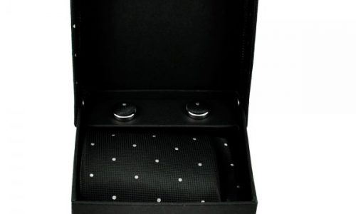 Black & White Polka Dot Men’s Tie, Hanky & Cufflinks Set