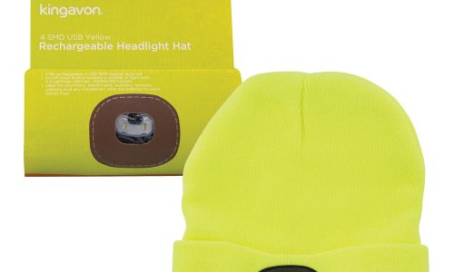 Kingavon Beanie Hat with Built-in 4 SMD LED Head Light, Head Lamp – 3 Mode USB Rechargeable – Yellow