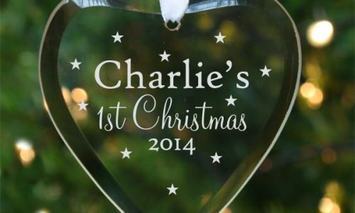 Personalised Babys 1st Christmas Star Design Hanging Glass Heart