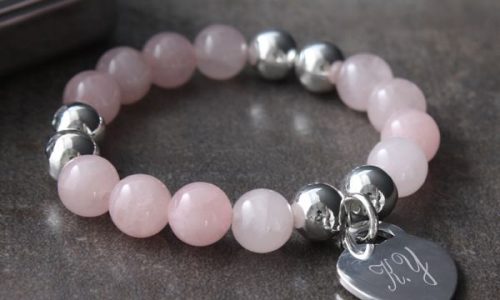 Rose Quartz Bracelet with Personalised Heart and Presentation Box