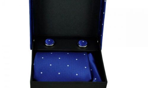 Royal Blue & White Polka Dot Men’s Tie, Hanky & Cufflinks Set