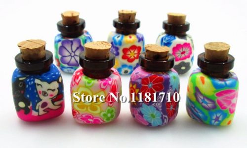 2ml Polymer Clay Perfume Bottle with Natural Wood Cork Necklace Pendant Essential Oil Glass Bottle with Wood Stopper