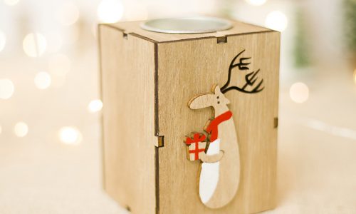 Christmas Wooden Elk Gift Print Candlestick Decor