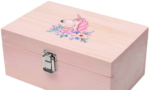 Pink Wooden Box With Unicorn Or Flamingo Print