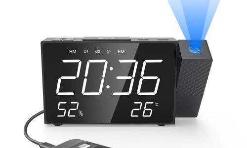 $26.51Quick ViewDescription :Projection Alarm Clock Digital FM Radio Dual Alarm Volume Snooze Time Humidity Temperature DisplayProject Time Onto CeilingWallExclusive Design Projection Alarm Clock. iFunTec alarm clock projector with 7-Inch LED Screen adopted advanced fine processing lamp beads, distinct clear pure bright LED display. Inlets high precision projector with blue light projection, comfortable viewing for eyes.180 SwivelReversible projection with adjustable focus to achieve best projection effect.Digital HygrometerThermometerClockRadio①alarm clock projection Humidity Display Range Between 10%RH-99%RH.②alarm clock projector Temperature ℉/℃ Adjustable.③alarm clock projector 12H/24H Switchable Time Display.④ projection alarm clock A Portable Radio with an ultra slim one-meter antenna cable. Intelligently searches for FMs and MemorizeDual Alarms6+1 Ringtones12 times Snooze①our projector alarm clock has Dual alarms with freely selectable 6 ringtones or FM Radio Sounds. Customize your favorite wake-up music with our alarm clock projector. ②our alarm clock projection with Humanized Large Snooze Button Setting, maximum 12 times snoozes. Get up wont be difficult anymore!Adjustable Volume / BrightnessAdditional USBMemory TimeThe elegantly designed projection alarm clock with adjustable alarm tone and FM radio sounds. The alarm clock projection has delicate petals gather at the horn outlet for the crystal clear sound quality. Brightness of alarm clock projector can be adjust