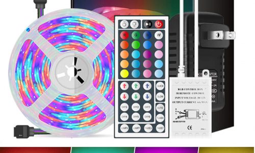 $11.99Quick ViewSpecification:Voltage: DC12VPower: 24WLight sources: SMD 3528Light quantity: 60 LEDs / M (300 LEDs per roll)Light Color: RGBRemote control: 44 keysIP grade: IP65 (waterproof)Size: 5M/196.85 inApplication: use for decorative the living room, bedroom, bar, KTVFeatures:Super bright:Use high brightness superb SMD 3528 300LEDs type,high intensity and reliability LED light strip which gives a super bright light.Environmental Friendly: Low carbon, no radiation, no flicker, and no pollution to human and environment.Other Functions: You can choose different colors, adjust brightness, turn On/Off, control modes: Flash, Strobe, Fade, RGB Smooth-change, Static as you like.Multi-Color LED Strip that can change color by using the remote controller.Applications:Applicable for automobile decoration lighting or border.Extensively applied in Backlighting for signage letters, concealed lighting and advertisement sign lighting. Easy to install and operation.Light up colorful home life ,DIY household lights for hallways, stairs, trails ,windows.Light up colorful life hotels decoration use,Theaters, clubs, shopping malls, festivals and performances.Architectural decorative lighting,Archway, canopy and bridge edge lighting, Security lighting and Emergency.Package included:1x 5M 3528 RGB LED strip1x Power supply(US plug)1x 44Keys IR Remote Controller