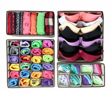 4pcs Closet Underwear Organizer Non Woven Bra Underwear Socks Drawer Storage Boxes