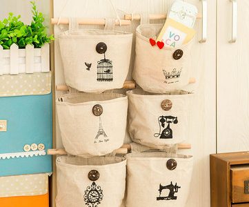 3Pcs Wardrobe Cloth Wallpapers Storage Bag Retro Cloth Linen Wall Hanging Bag Bath Bedroom Kitchen