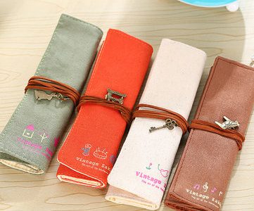 Canvas Pencil Case Roll Up Cosmetic Storage Bag
