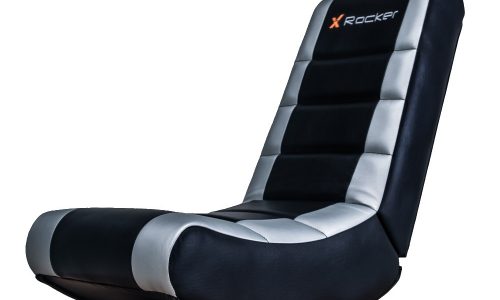 X Rocker Video High Back Faux Leather Floor Rocker – Silver/Black Upholstery