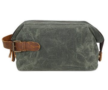 Canvas First Layer Leather Clutch Bag Vintage Travel Wash Cosmetic Bag For Men Women