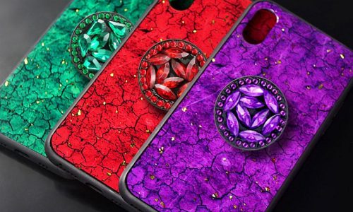 Marble Pattern Phone Case with Bracket Grip Luxury Diamond Back Cover for iPhone XS Max XR X 8 7 6 Plus