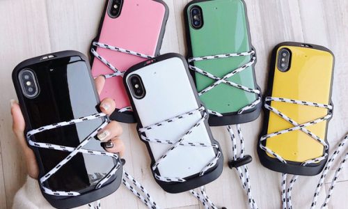 portable card mobile shell cover for iphone xs xr xsmax cases full protect bright acrylic cell phone cases for iphone 6 7 8 plus with rope