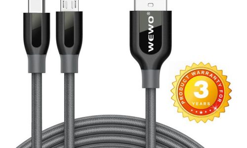 Wewo Usb Type C Charge Cable 2.4A High Speed Charging Micro Usb Cable Durable Nylon Braided for Android Smart Phone with Retail-Box