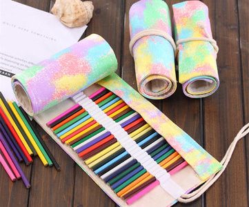 48/72 Hole Canvas Wrap Roll up Pencil Case Pen Bag Holder Storage Pouch Colorful