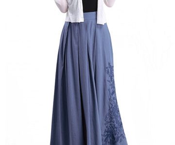 Vintage Women High Waist Embroidery Printed Linen Skirt