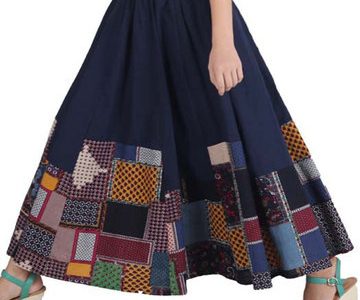 Vintage Splicing Printed Elastic Waist Skirts For Women