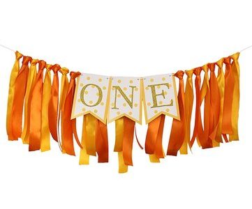 Yellow Baby Infant ONE 1st Birthday Party Banner Hanging Garland Bunting Banners Prince Princess Fla