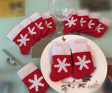 10Pcs/Set Christmas Socks Cutlery Tableware Holder Sets Dinner Decor