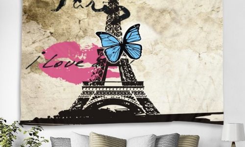 Eiffel Tower Paris Butterfly Art Decoration Wall Tapestry