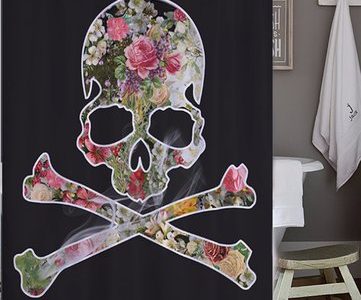180x200cm Halloween Flower Skull Polyester Shower Curtain Bathroom Decor with 12 Hooks