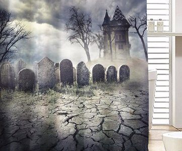 180x180cm Halloween Haunted House Polyester Shower Curtain Bathroom Decor with 12 Hooks