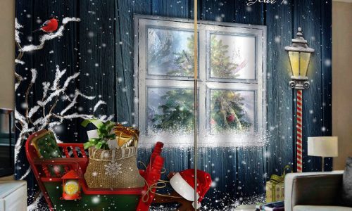 2 Panels Christmas Sleigh Gift Print Window Curtains