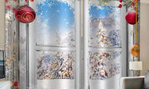 2 Panels Christmas Balls Tree Window Print Window Curtains