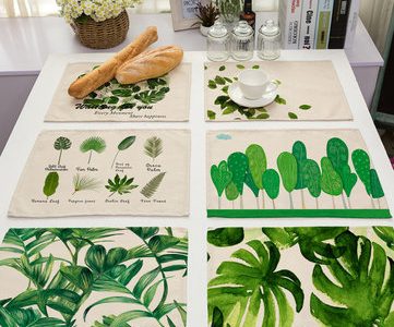 Fresh Green Leaves Printed Cotton Rice Pad Mats Kitchen Tableware