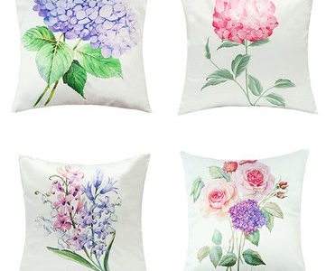 Imitation Silk Pillow Case Green Leaf Flowers Cushion Cover