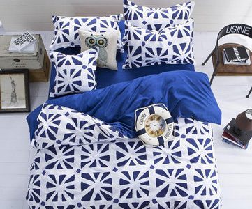 3 Or 4pcs Polyester Fiber Blue White Reactive Dyeing Bedding Sets Single Twin Queen Size
