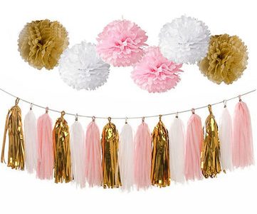30Pcs Set Pink Gold Tissue Paper Pom Tassel Garland