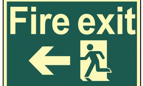 Scan Fire Exit Running Man Arrow Left – Photoluminescent 300 x 200mm