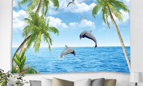Seaside Dolphin Tree 3D Print Wall Tapestry